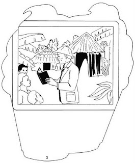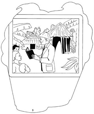 A Sala estava meio escura,e os slides eram projetados numa tela grande,enquanto a missionaria is explicando o que significa cada um deles.As crianças viram os africanos,bem como,os macacos,elefantes.Viram uma aldeia de casas feitas de palha.Um dos slides mostravam cena onde podia-se ver os africanos cultuando demonios.Viram tambem crianças correndo com medo dos